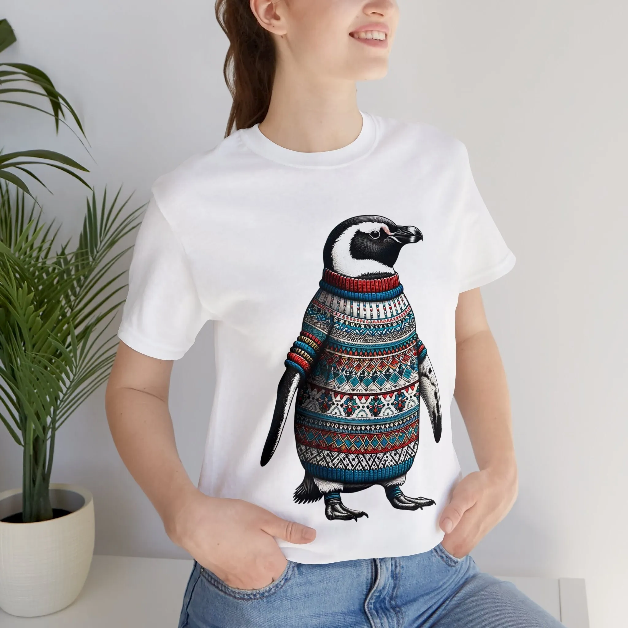 Cozy Winter Penguin Sweater Print T shirt Unique Animal .