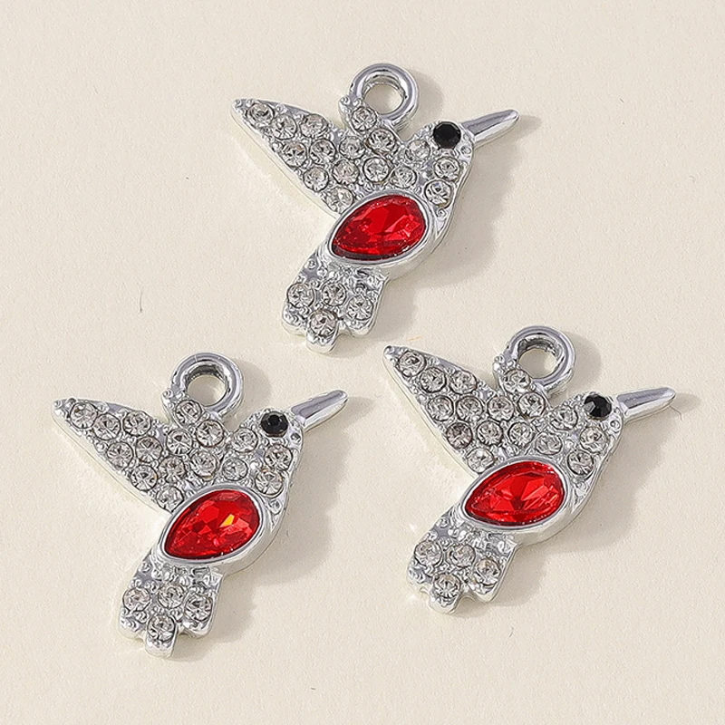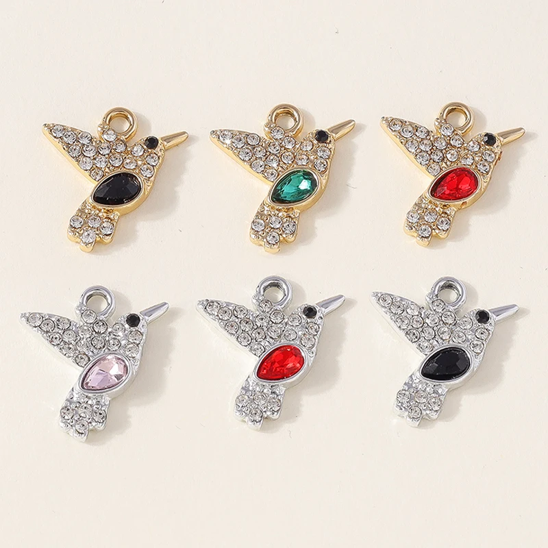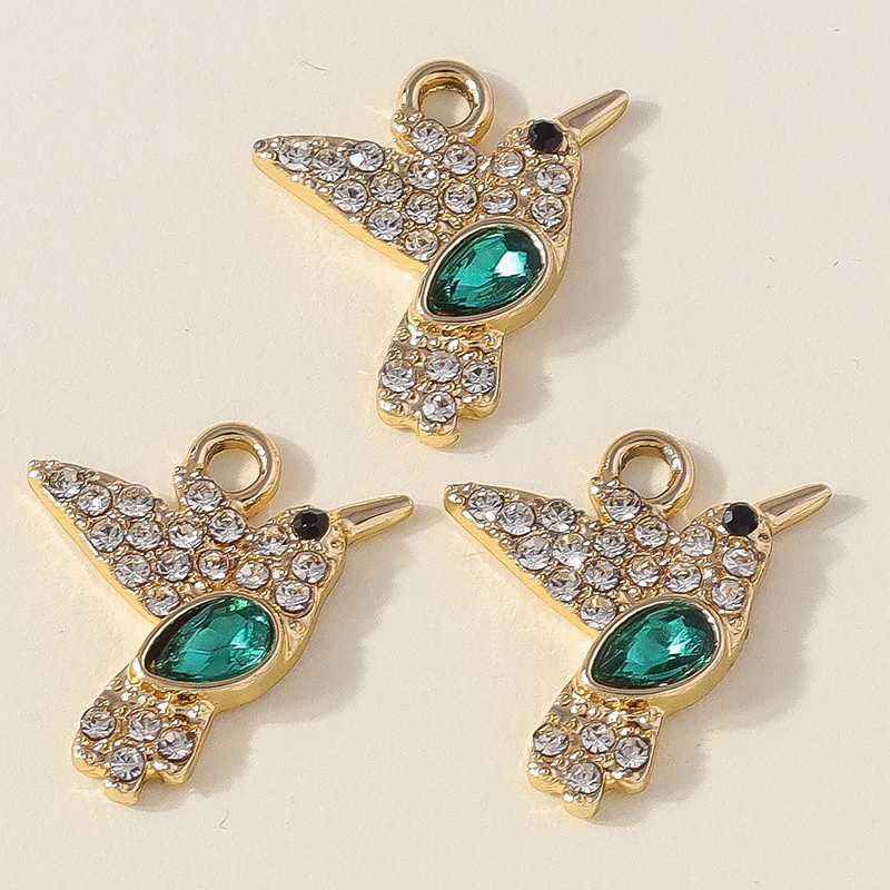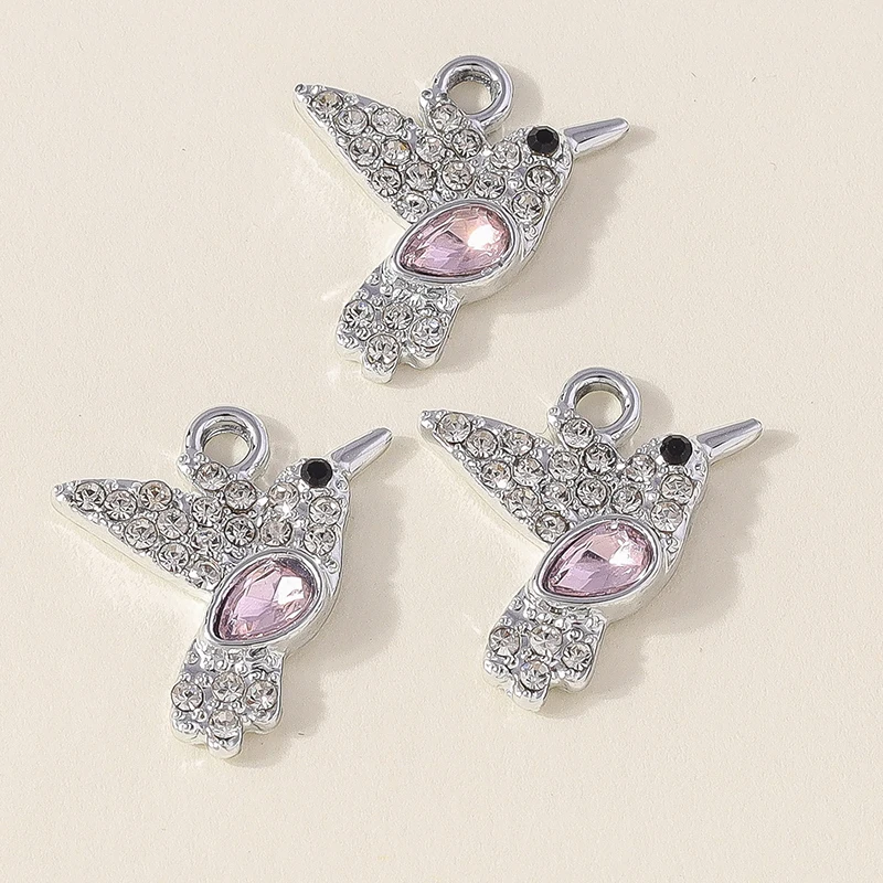 Leslie 10pcs Glorious Crystal Hummingbird Charms Pendants